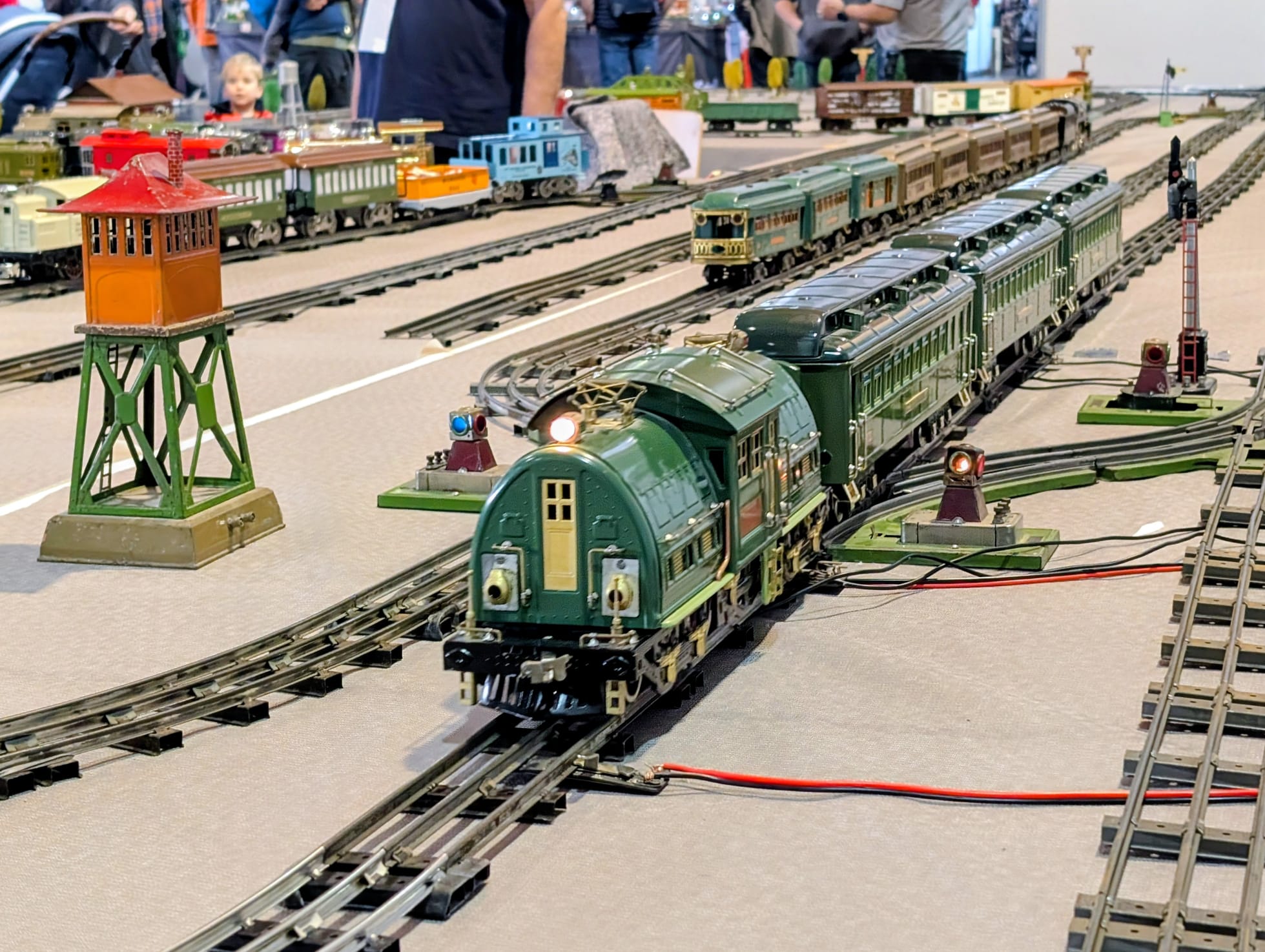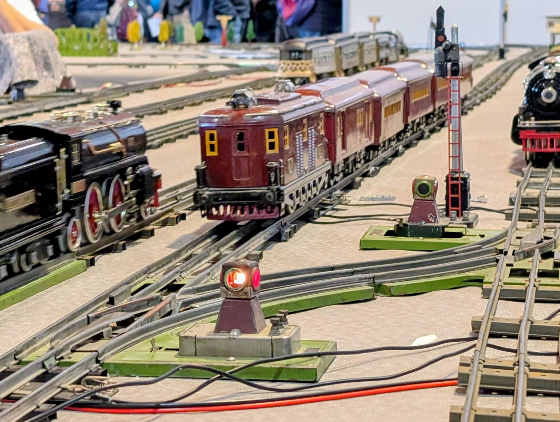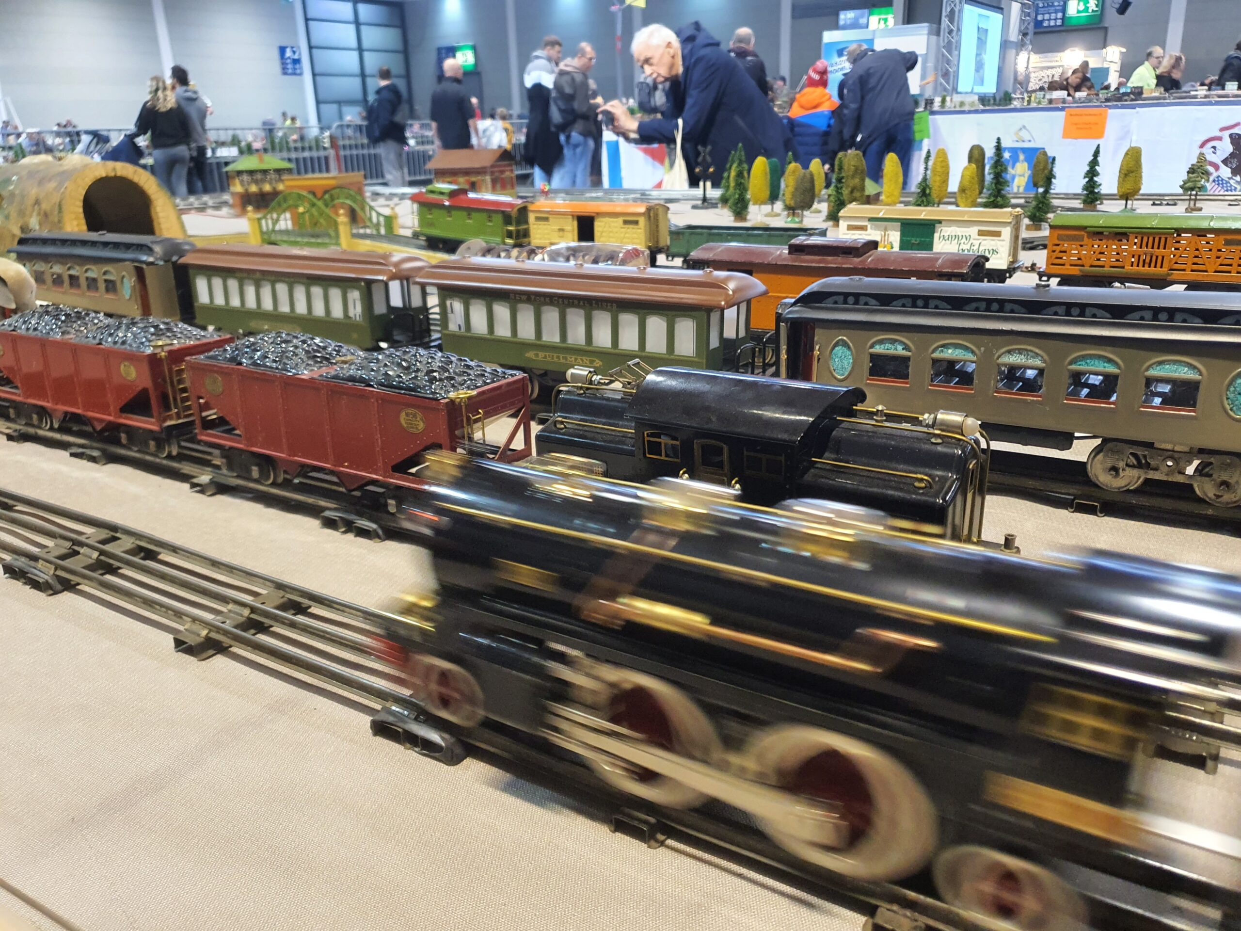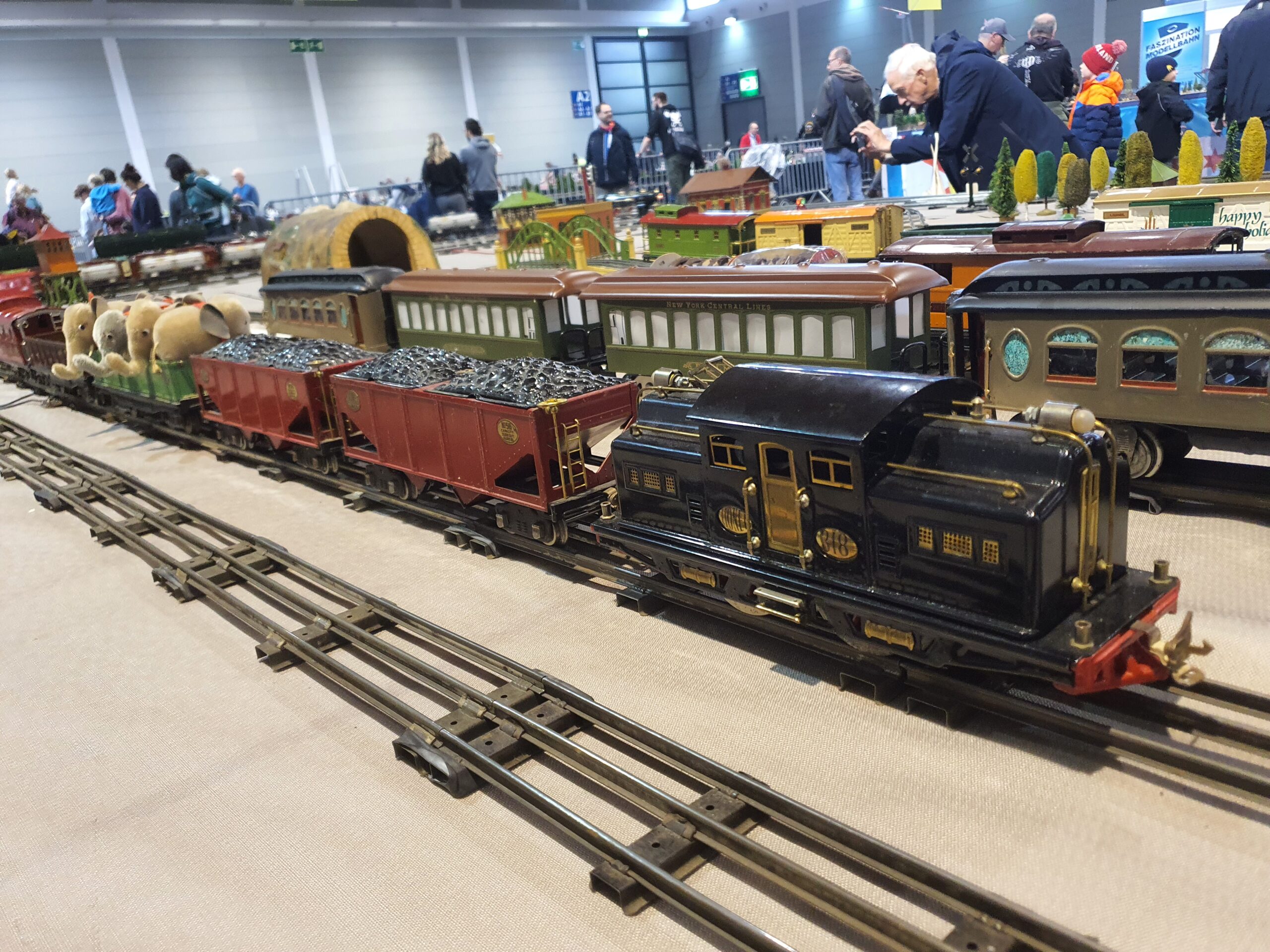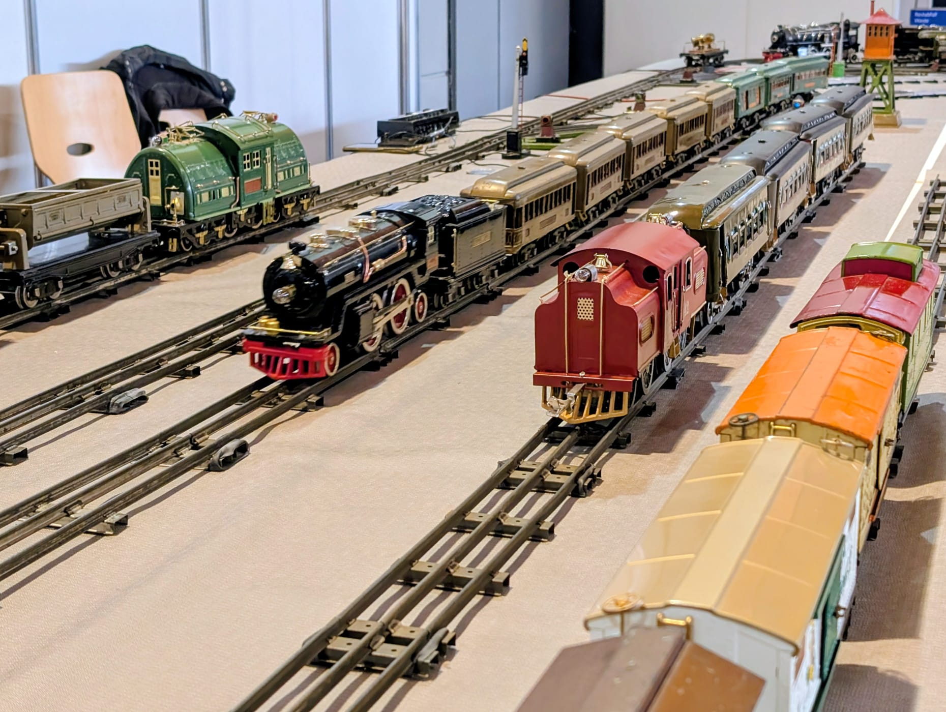 Wir lassen die schönen Stücke nicht in der Vitrine verstauben, sondern veranstalten regelmäßig Spielertreffen, auf denen wir gemeinsam eine abwechslungsreiche Anlage aufbauen, uns dazu austauschen und zusammen Spaß beim Spielen mit den Eisenbahnen großer Spuren haben.